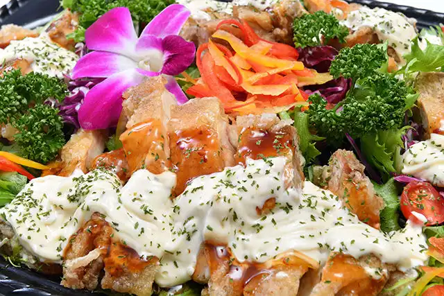 チキン南蛮、レタス、紫キャベツ、ミニトマト、パプリカ、パセリ、タルタルソース