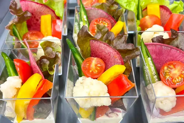 ※カップ料理はお一人様おひとつずつ、大皿料理はお1人様につき基本各1~2ピースほどでご用意しております。