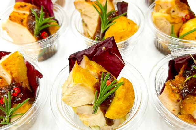 ※カップ料理はお一人様おひとつずつ、大皿料理はお1人様につき基本各1~2ピースほどでご用意しております。