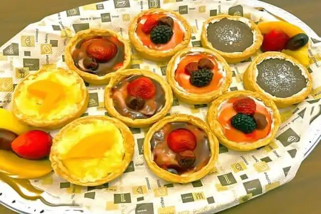 ラズベリーソースのタルト、ブルーベリーソースのタルト、ダブルチョコレートのタルト、スイートポテトのタルト