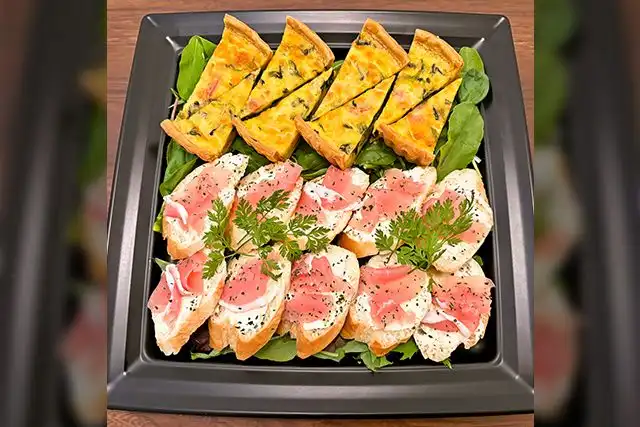 キッシュロレーヌ、生ハムとクリームチーズのカナッペ