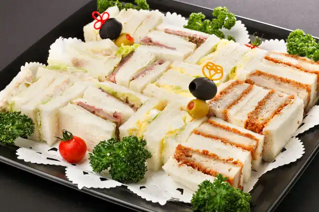 ローストビーフサンド。ロースカツサンドなどワンランク上の盛合わせです。