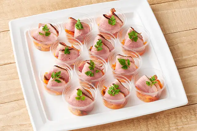 パーティーの前菜に欠かせない鴨肉のロースハム。こだわり選び抜いた鴨肉を柔らかくジューシー仕上げました。