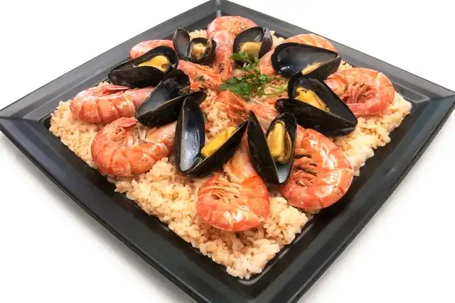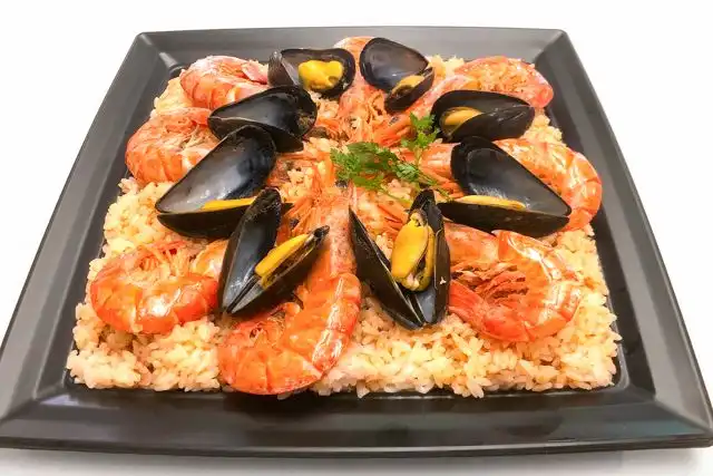 ビッグサイズ有頭海老・大きなムール貝・ボリューム十分な魚介ライス