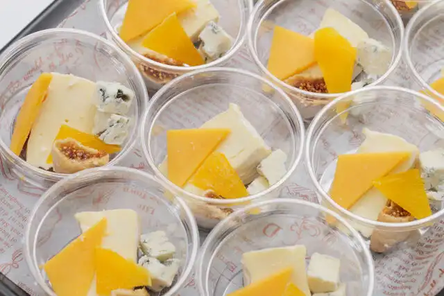 ブリーチーズ・ブルーチーズ・レッドチェダーの3種類のチーズに2種類のドライフルーツを添えました!