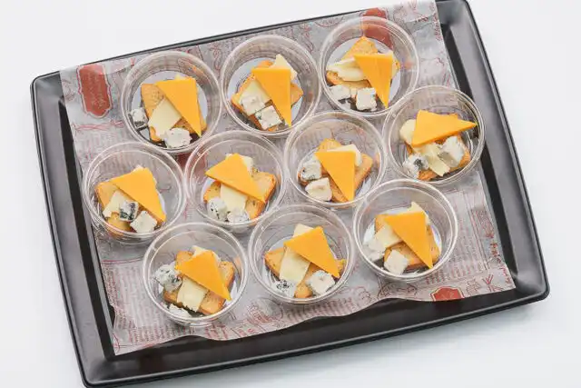 ブリーチーズ・チェダーチーズ・ブルーチーズの盛り合わせです。トーストを添えています。