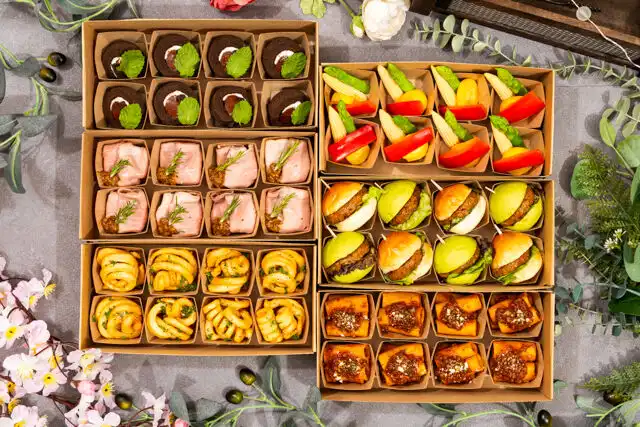 全品小分けの容器で取り分けもしやすく、衛生的で安心。色とりどりのお料理は目で楽しく、パーティを華やかに彩ります。