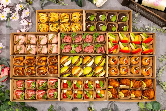 全品小分けの容器で取り分けもしやすく、衛生的で安心。色とりどりのお料理は目で楽しく、パーティを華やかに彩ります。