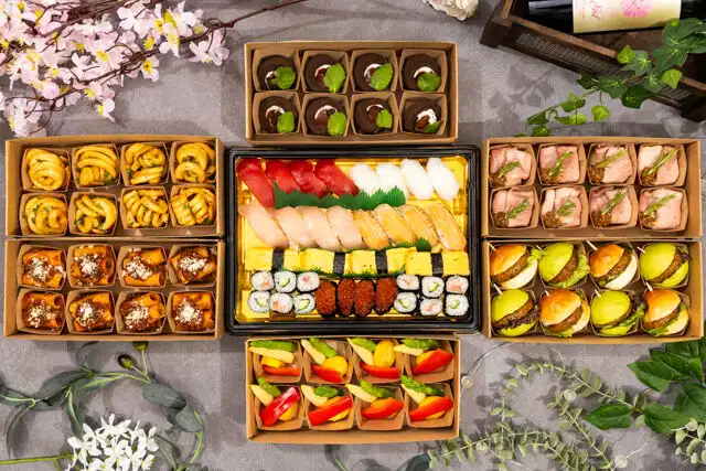 全品小分けの容器で取り分けもしやすく、衛生的で安心。色とりどりのお料理は目で楽しく、パーティを華やかに彩ります。