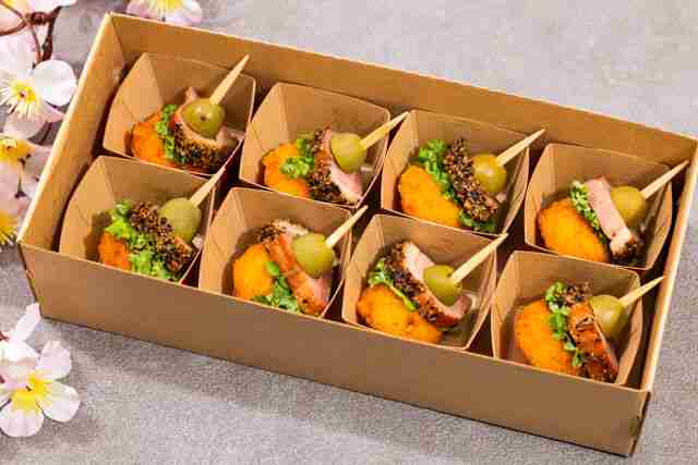 彩り豊かなお野菜やフィンガーフードを見た目もかわいいクラフトのカップとBOXにつめて、お届けいたします。