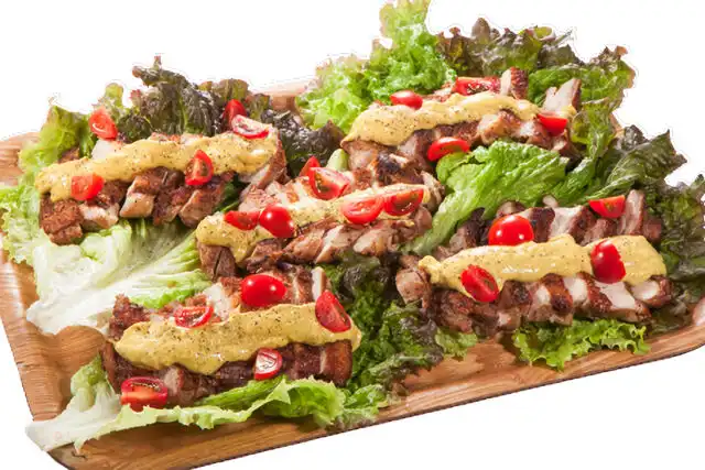 白ワインとブレンドスパイスで一晩じっくり漬けこんだチキンを、自慢の特大鉄板でグリルし、『自家製カレーマヨネーズソース』で和えました!食欲そそるお勧めの逸品!