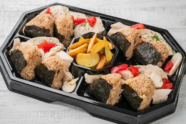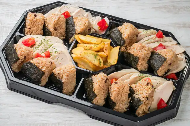 /酵素玄米おにぎりと低温調理チキンオードブル