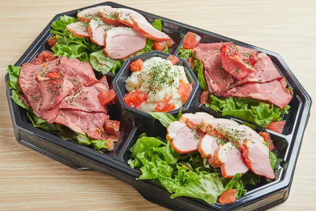 自家製のローストビーフと鴨のスモークが入ったサラダイスの特製オードブルプレートです。
