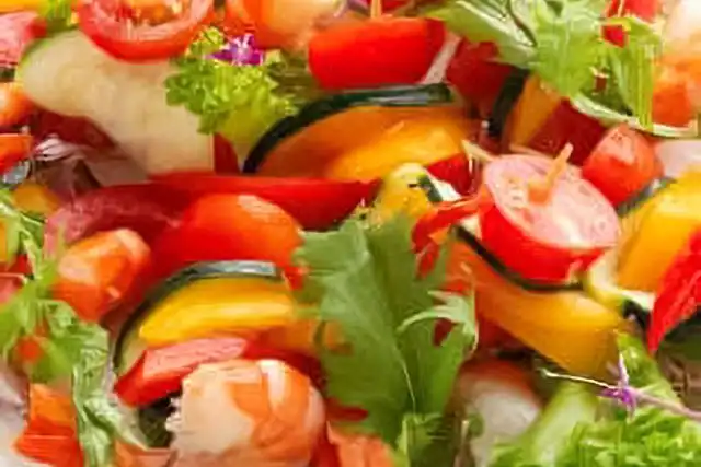 メイプルシロップの甘みを纏った野菜のマリネと蒸し海老の相性は抜群です。ピンチョス仕立てにより、会話の邪魔をせずお召し上がりいただけます。