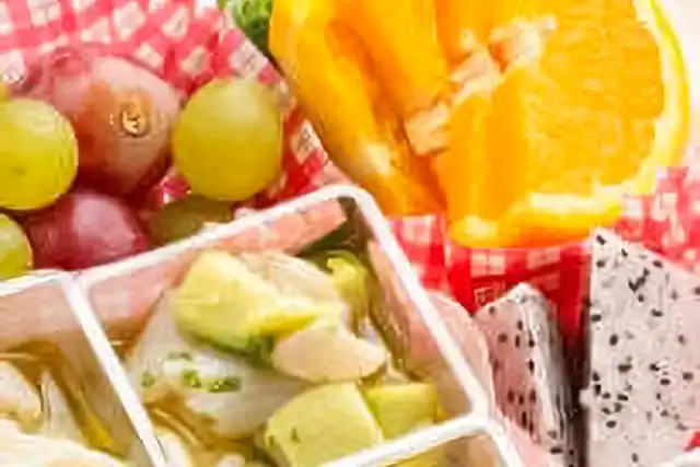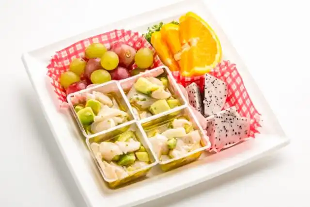 ホタテとアボカドのカクテル、季節のカットフルーツ