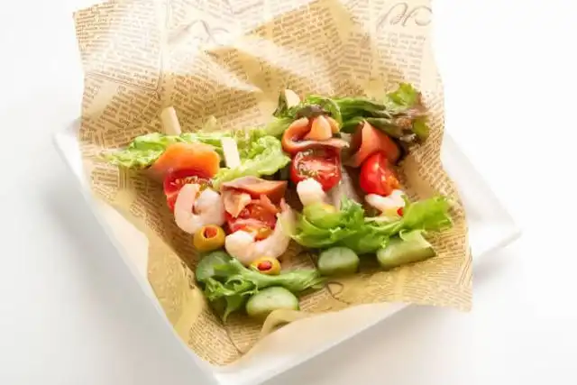 創作ダイニングSAKIGAKEがパーティー、会食用に新たに開発した、取り分けの必要がない食べやすいシーフードサラダです。会話や催しが途切れることの無い楽しい時間を演出します。