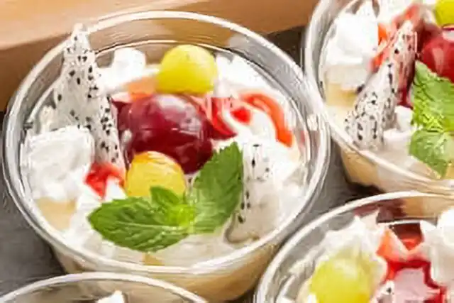 その時々の旬のフルーツをトッピングした創作ダイニングSAKIGAKE流のフルーツパフェをお楽しみください。