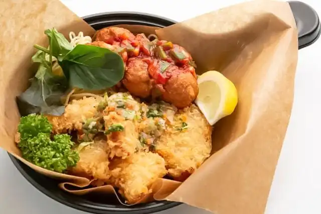 サクッと揚げた白身フライに特製エスニックソースを合わせました。