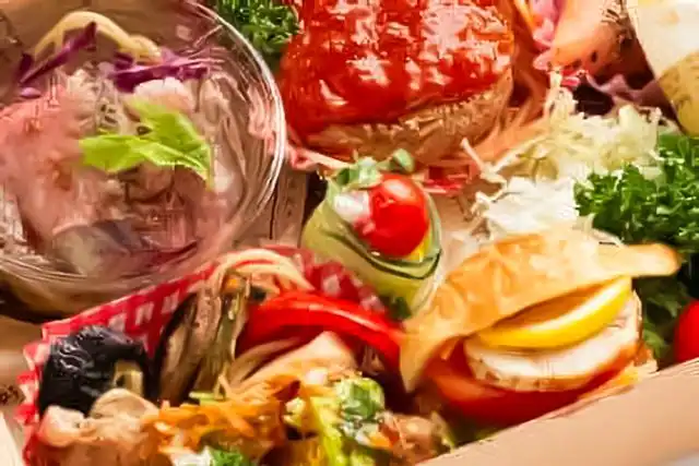 ローストビーフ/スモークサーモンロール/ハンバーグ/ローストチキンハーブマリネ/焼き野菜/鉢植えポテサラ/クロワッサンサンド/アメリカンブリトー