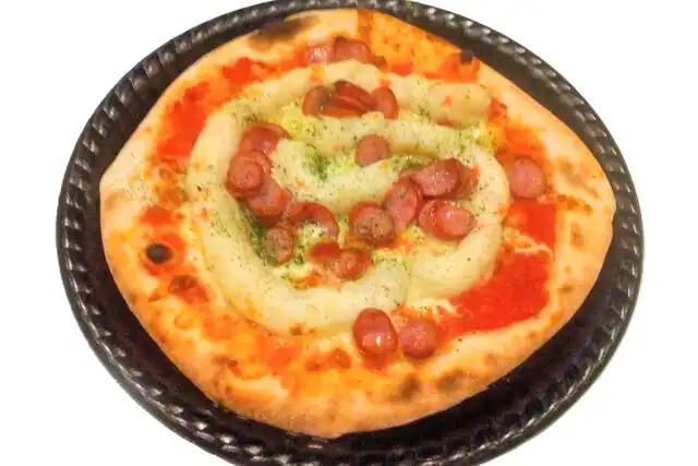 香ばしく焼き上げたソーセージの皮がパリッと弾け、ポテトの優しい甘みが口に広がります。 とろけるチーズが全体の味を引き締める、ボリューム満点の一枚。