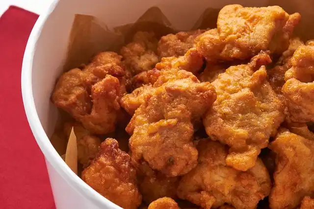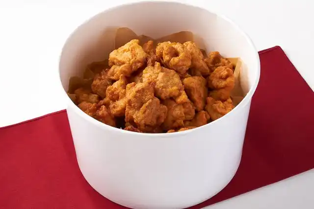 紐を引いて15分、出来立て熱々のフライドチキンをご自宅で楽しめます。若鶏のもも肉を、醤油とショウガをベースに味付けしたボリューム満点のフライドチキンです。
