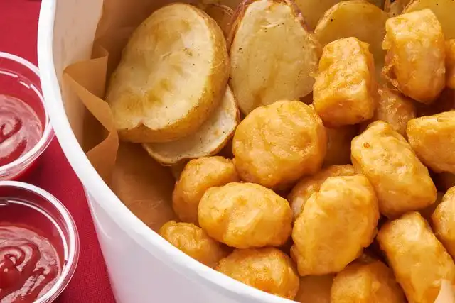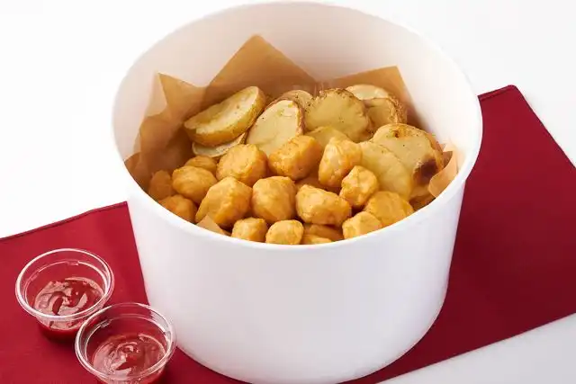 紐を引いて15分、出来立て熱々のチキンナゲットとポテトをご自宅で楽しめます。チキンナゲットとほくほくポテトを一皿に。あっさりした味わいで人気です。