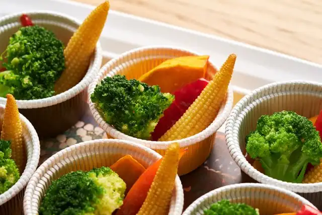 温野菜(ブロッコリー、パプリカなどその日のおすすめが数種類入ります)、ドレッシング