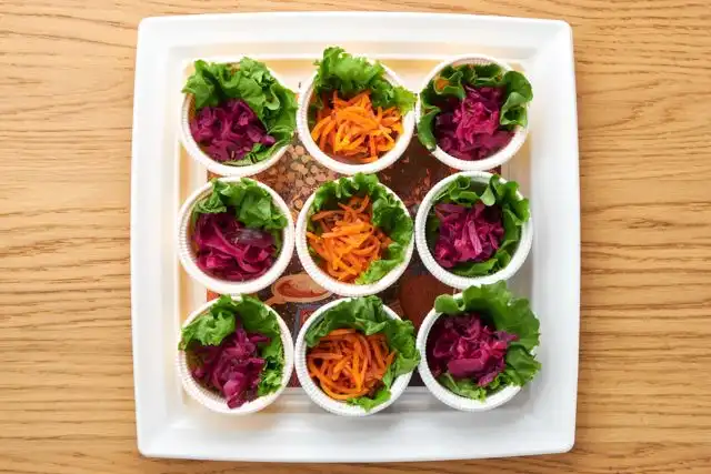スパイス仕立てのキャロットラペ、紫キャベツのアチャール