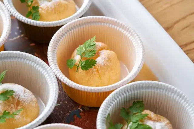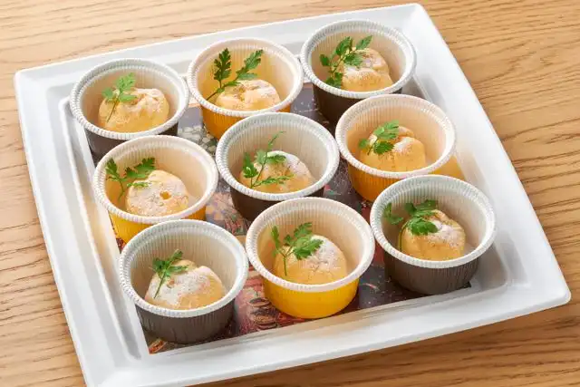 一口サイズのシュークリームです。優しい甘さのなめらかなクリームをお楽しみください。