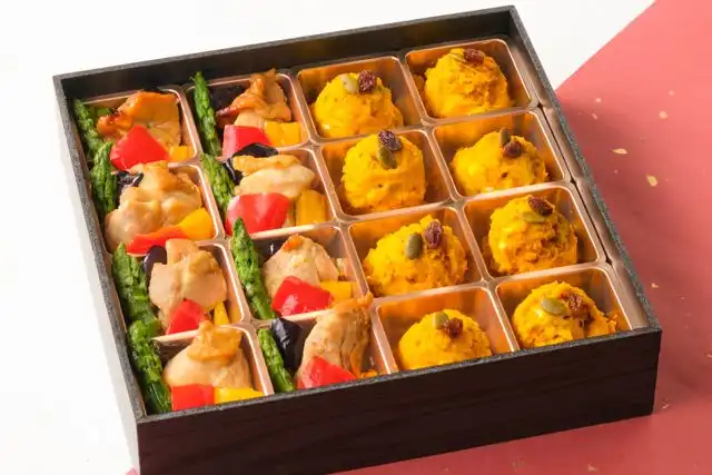 香ばしい国産鶏と野菜のグリルと、クリーミーで優しい甘さの南瓜のデリサラダ。濃厚な旨味と自然な甘味が絶妙に調和する、彩り豊かな組み合わせです。