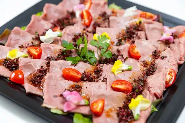 ローストビーフ、和風ソース、季節の野菜