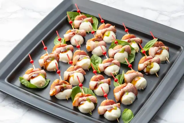 合鴨とトマトのカプレーゼは相性抜群。少し大人な味わいをお楽しみ頂けるサラダに仕上げました。彩りも華やか!パーティーシーンを盛り上げる1品です。※画像はLサイズです。