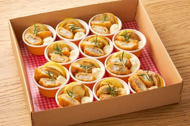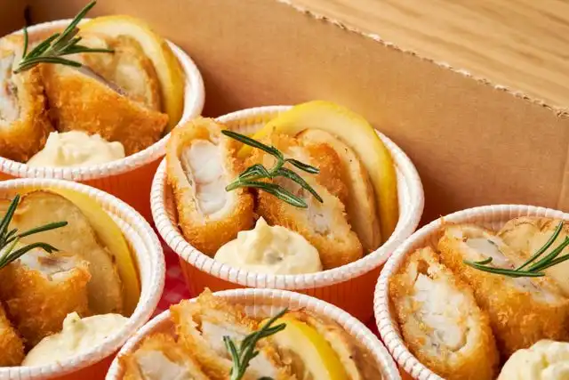 白身魚フライ、ほくほくポテト、タルタルソース、スライスレモン