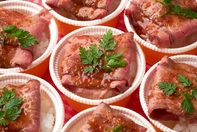 ごはん、ローストビーフ、シャリアピンソース