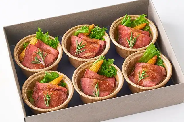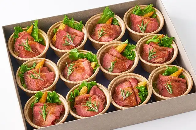 国産牛を低温でじっくり焼き上げ、食感は柔らかく牛肉の魅力を最大限に引き出した本格ローストビーフです。