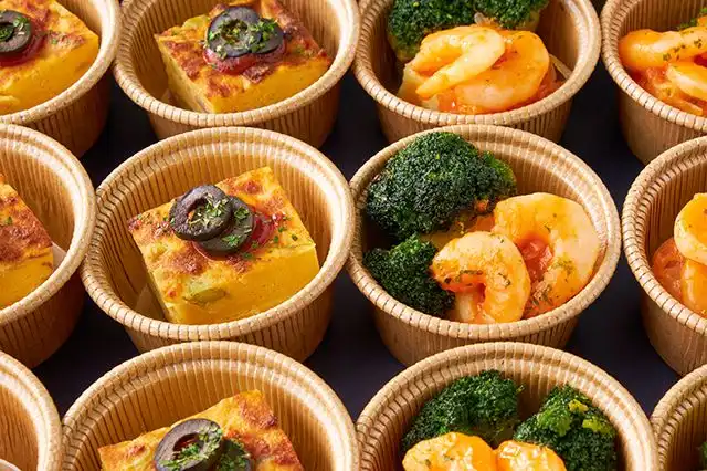 プリプリとしたエビの食感とソースの旨味が楽しめる<えびのオーロラソース>とイタリアの伝統的なオムレツ<イタリアンフリッタータ>の2種類が一度に味わえる前菜盛り合わせプレートです。