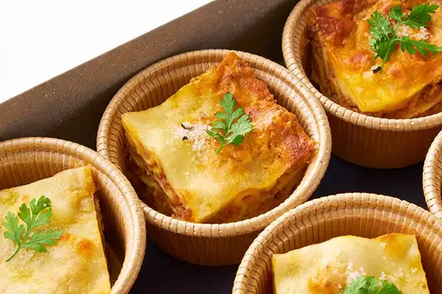 滑らかな食感の幅広パスタに、玉ねぎや牛肉の旨みが詰まったボロネーゼソースとチーズを重ね、こんがりと焼き上げたイタリアの郷土料理ラザニア。