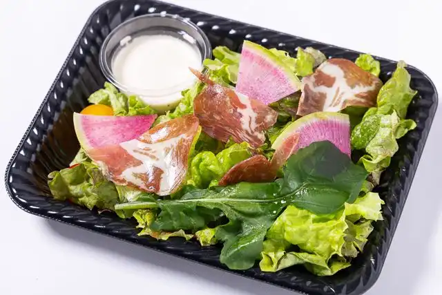 厳選されたイタリア産生ハムを贅沢に使用。しっとりとした生ハムの程よい塩気と旨味が、シャキシャキの新鮮野菜と絶妙にマッチします。パーティーの食卓をパッと華やかに彩る、前菜にもおつまみにもぴったりなワンランク上のサラダです。