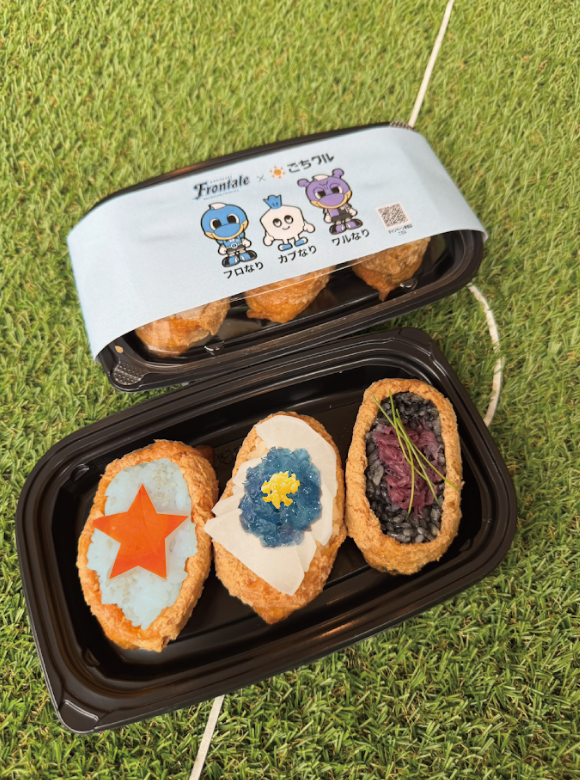 川崎フロンターレからは「選手も食べてるおいなりさん~マスコットコラボver~」が登場。フロンターレの選手たちが試合前にチャージしている、ケータリングメニューで大人気のおいなりさんが、なんと公式マスコットとの夢のコラボレーションで実現しました。「フロなり・カブなり・ワルなり」という3つのキャラクターをイメージした、美味しくて、エネルギッシュで、そしてかわいいおいなりさんは、フロンターレ愛がたっぷり詰まった逸品です。