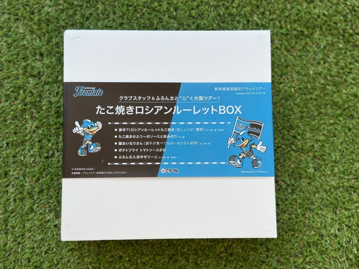 今回のツアーにおいて、ごちクルが全力を注いだのが、この企画のためだけに特別に用意した「たこ焼きロシアンルーレットBOX」です。対戦相手がガンバ大阪ということで、大阪名物とフロンターレオリジナルをテーマにした遊び心満載の内容に!