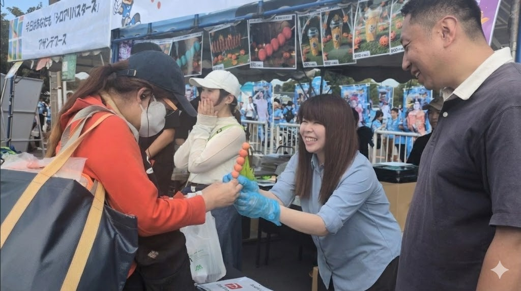 さらに、この日のブースを彩ったのは「怪しく光るマスコットカラーのディップソース」と、愛らしく並んだ「タコちゃんウインナーイレブン」と「フロンパル!カラフルエッグスプラッシュ串」。いつものスタグルが、見た目にも楽しいハロウィンパーティーの主役に変身しました。