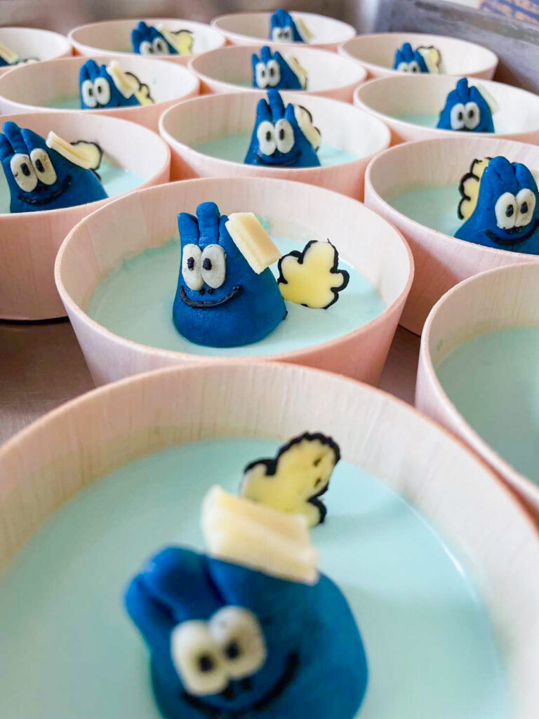 さらに、「ごちクル グループシート6」では特製オードブルをこの試合限定の内容でご提供。川崎フロンターレの公式マスコット「ふろん太」のふろん太入浴中ゼリーと、ガンバ大阪の公式マスコット「モフレム」がコラボするサプライズを企画、実施しました。