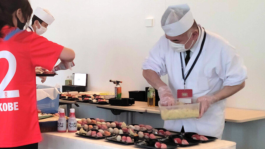 国立競技場での初開催イベントでは、特別なサービスを提供しました。寿司職人がその場で握る新鮮な寿司は、ゲストに大変喜ばれ、長蛇の列ができるほどの人気を博しました。寿司は新鮮で美味しいだけでなく、その場でのライブ感も楽しめるため、特別な体験を演出しました。