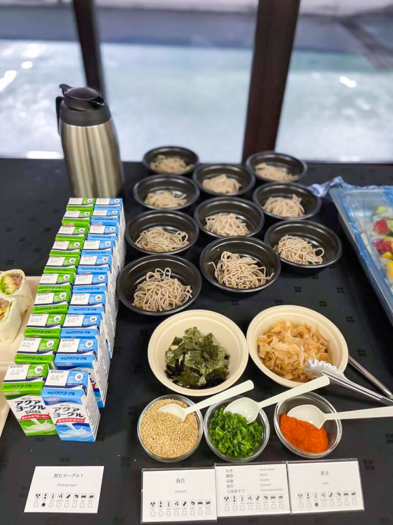 例えば、夏場には、冷やしうどんや冷やしそばなど、暑い季節でも美味しく食べられるメニューをご用意。また、ムスリムの選手にも安心して召し上がっていただくために、ハラル対応のメニューもご用意しております。