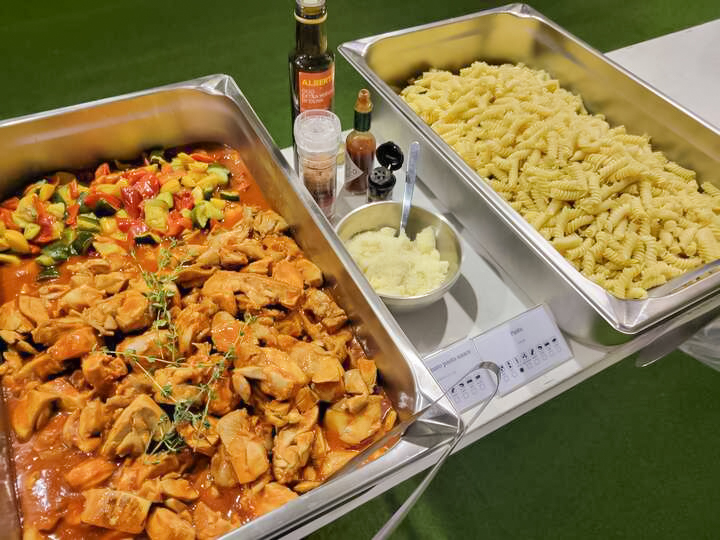 私たちの提供する食事は、プロアスリートの厳しいトレーニングと試合をサポートするために、多様なメニューを取り揃えています。リカバリーを促進するメニューから温かい料理、試合前や移動中に手軽に食べられるワンハンドフードまで、選手たちの様々なニーズに対応可能です。