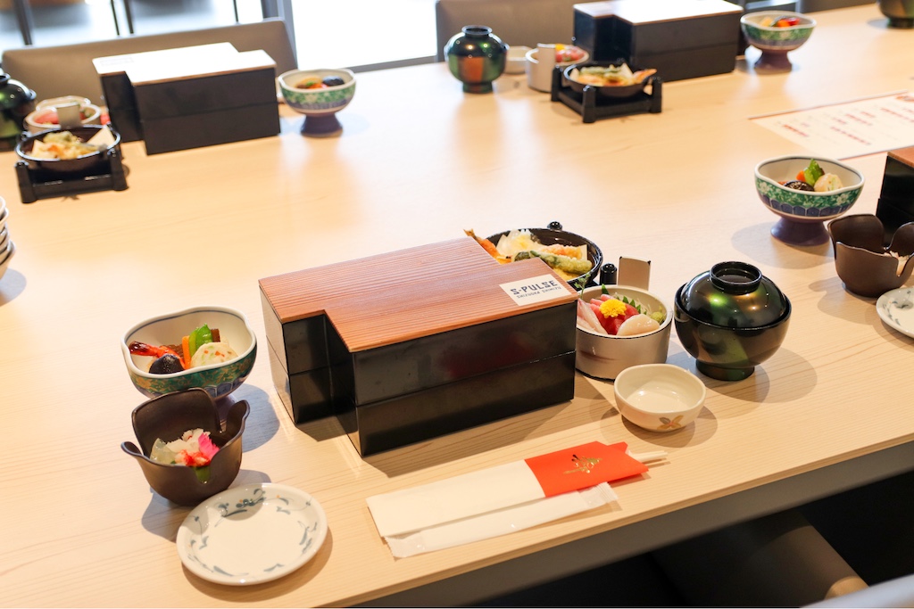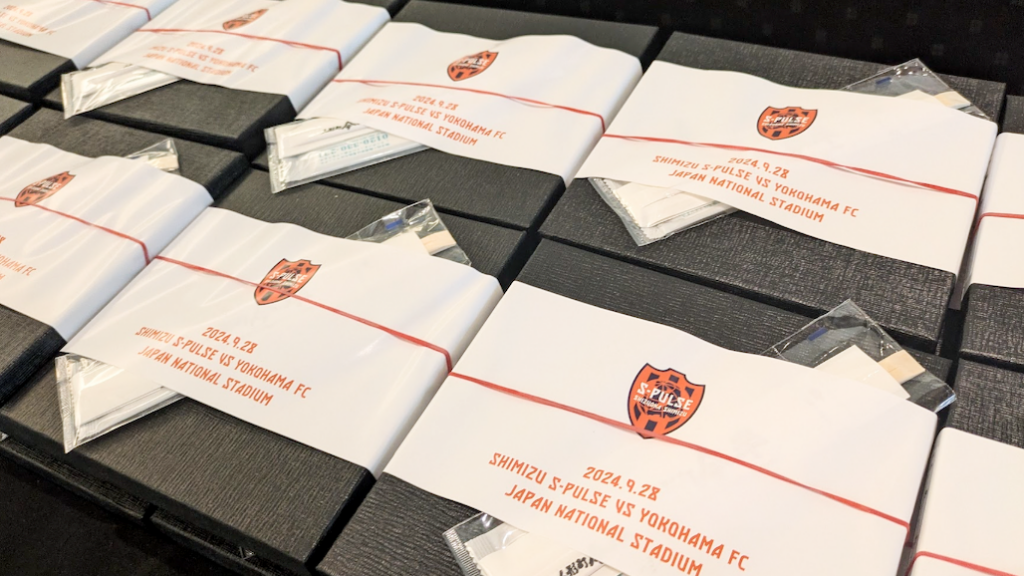 食事は高級感がある和風会席膳を。会席膳の蓋には清水エスパルスのロゴシールを入れてさり気ない特別感とオリジナル演出も施しました。