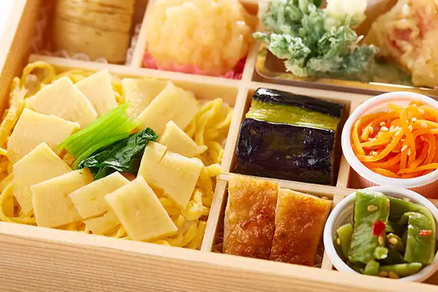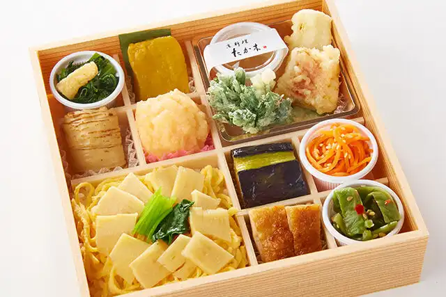 たか木特選京懐石膳 日々【にちにち】は、京料理 たか木監修 日々(東京店)がおすすめする仕出し弁当です。山椒の香りをまとった春の筍ご飯や特製の海老団子など、ひと手間かけて作られたお惣菜の数々を味わえます。じっくりと時間をかけて丁寧にひかれた「たか木」の出汁は、一般的なものと比べてはるかに濃厚。また、特製の海老団子は海老の食感が残るように粗く刻まれ、特製の出汁と玉ねぎの甘みが加えられ、ぷりっと食感良く仕上げられています。ロケ弁や特別なお集まりなど、ご利用シーンに合わせて配達いたします。