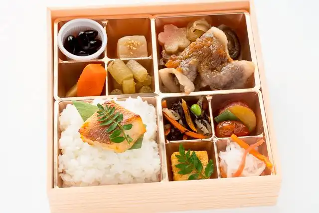 料理の盛り付けをより豪華に引き立てる高級折箱を使用しています。積み重ねや軽度の衝撃にも耐えることができ、見栄えも良いので接待や勉強会、説明会などにピッタリです。