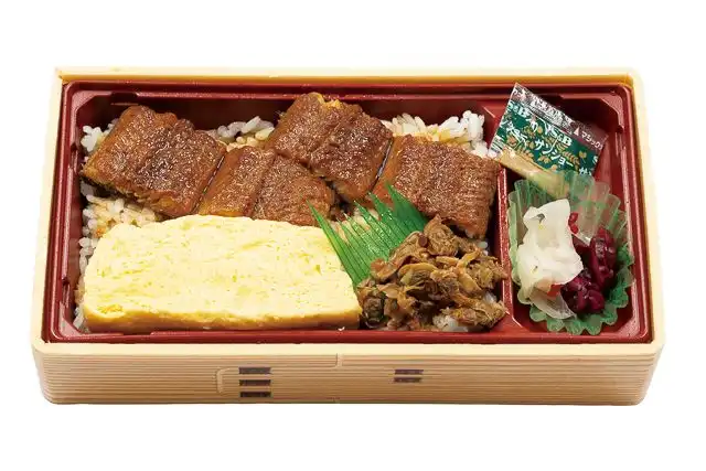 御飯210g、うなぎかば焼き、出汁巻き玉子、あさりしぐれ煮、漬物、山椒