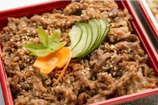 ご飯の上に黒毛和牛の焼肉がどどーーーんとのったボリューム満点のお弁当です。